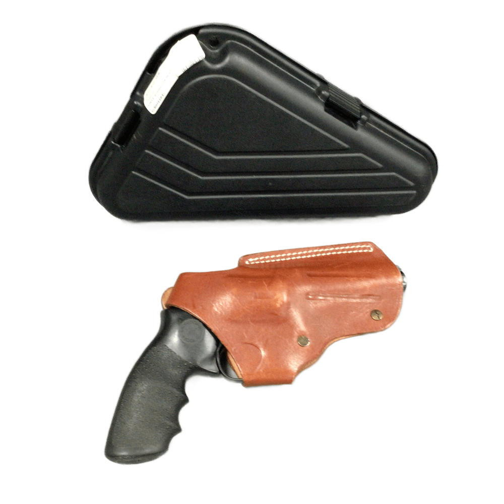 The Ruger Speed Six is a compact, robust double-action revolver, chambered in .357 Magnum with a 6-shot capacity. It is characterized by its fixed sights, round-butt grip frame for concealed carry, and 2.75-inch barrel. It weighs approximately 30–32 ounces. Includes hard case and holster.