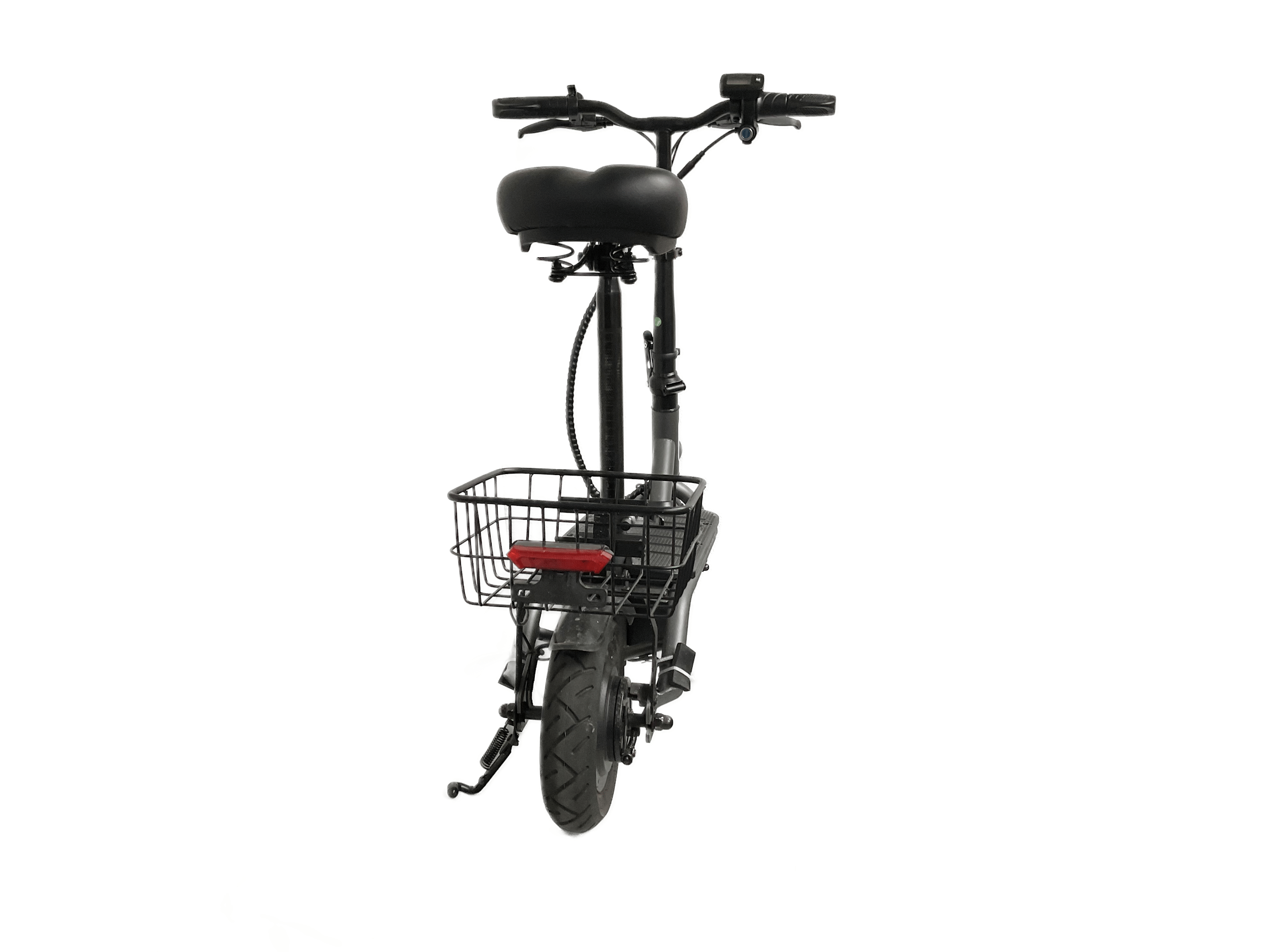 - Features: Foldable, adjustable seat & handlebar, rear basket, LED lights, LCD display
