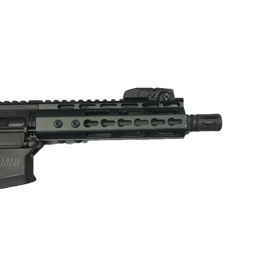 The American Tactical (ATI) Omni Hybrid 5.56 is a lightweight AR-15 platform featuring a steel-reinforced polymer lower receiver, with a 9-inch barrel. Key features include a 1:7 twist rate, and rails. It offers an affordable option for shooters seeking a versatile, “unstoppable” entry-level rifle. No magazine is included with this gun.