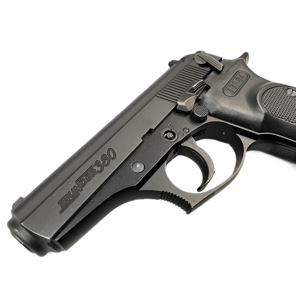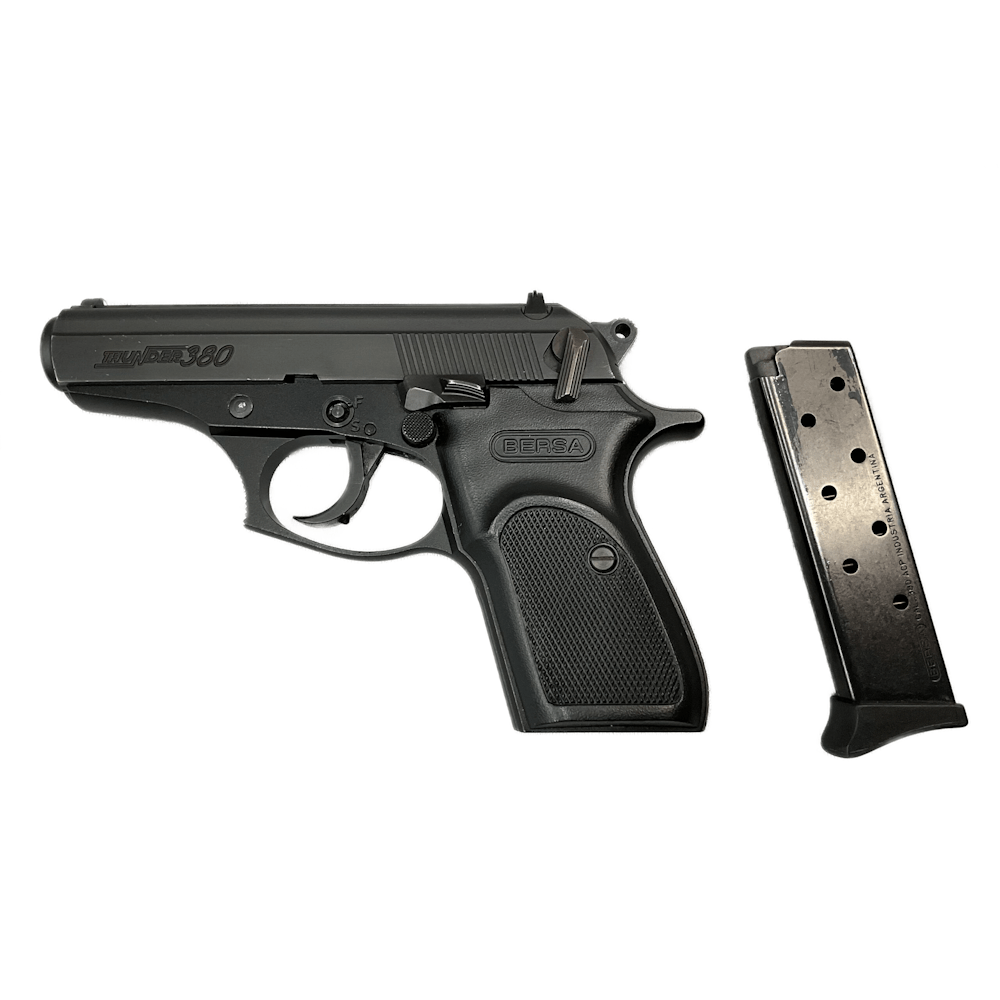 The Bersa Thunder 380 is a compact, blowback-operated .380 ACP pistol with a 3.5-inch barrel, an aluminum alloy frame, and a 7+1 or 8+1 round capacity. It features DA/SA action, fixed 3-dot sights, a manual safety with decocker, and weighs approximately 20–23 oz. It is popular for concealed carry due to its reliability and, for example, affordable, ergonomic design.